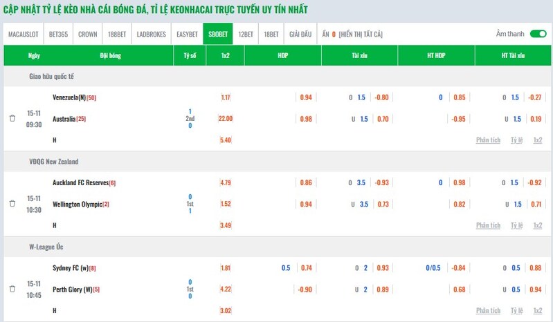 - Kèo từ các nhà cái lớn như Bet365, 188BET, SBOBET, MACAUSLOT… được tổng hợp trực tiếp.