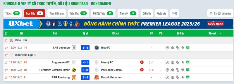 - Tỷ số trực tuyến real-time tích hợp thông số trận đấu