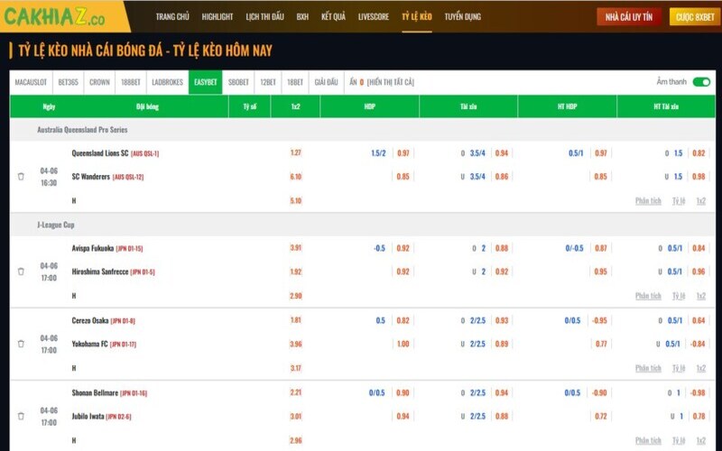 Nếu bạn đang tìm một địa chỉ uy tín để xem tỷ lệ kèo bóng đá trực tuyến chuẩn nhất thì Cakhia TV chính là lựa chọn hàng đầu. Tại đây, người chơi có thể cập nhật mọi thông tin về kèo cược, tỷ lệ ăn tiền và biến động theo từng phút.