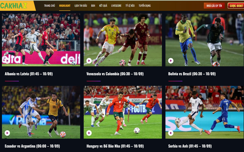 Cakhia TV cập nhật highlight bóng đá cho các giải đấu lớn