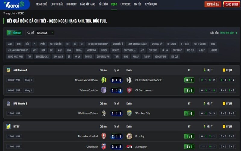 Kho giải đấu phong phú được Vaoroi TV phát sóng trực tiếp